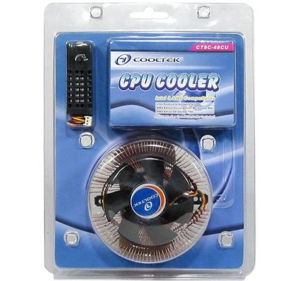 Der neue Cooltek CT8C-48 CU Kühler erinnert zunächst rein optisch der Zalman CNPS7000 Kühlerserie. Bei näherer Betrachtung fallen allerdings erhebliche Unterschiede auf. Mögen die Beilagen noch denen des Zalman Produktes sehr ähneln, handelt es sich beim Layout nicht um einen 92mm, sondern um einen 80mm Luftkühler.