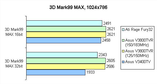 Zum Vergleich wurden die Asus V3400TV mit nVidia RivaTNT und die ATi Rage Fury mit Rage128herangezogen.
