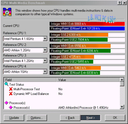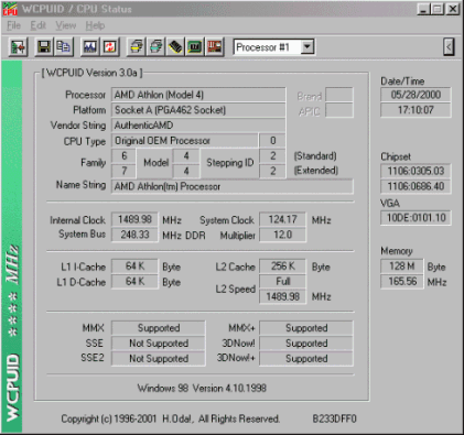 Und nun einige WCPUID 3.0A und Sandra 2001 Screenshots: