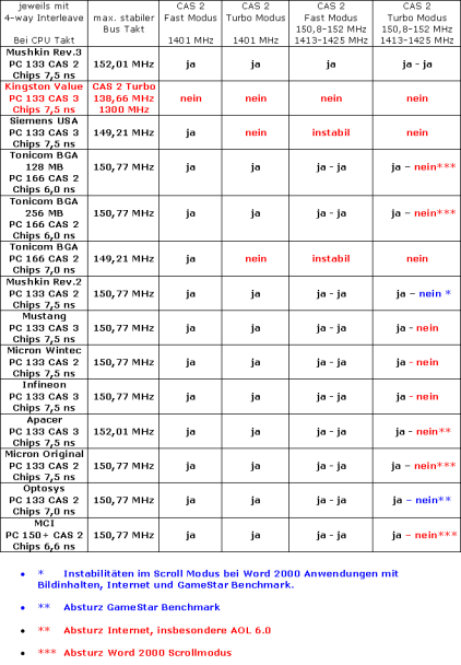 Messwerte des max. möglichen Speicherbustakt