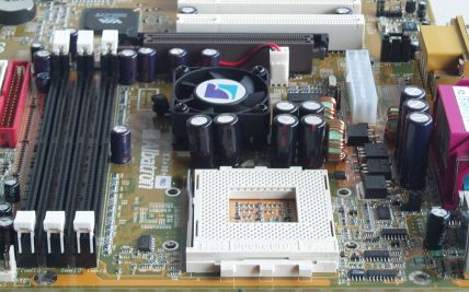 Das Layout des KX400+ Pro ist leider nicht durchweg gelungen. Das Board ist noch etwas schmaler als das KT3 Ultra von MSI. Das führt zu ähnlichen Problemen bezüglich des überstehenden Randes und der relativen Enge auf dem Board. Es muß die Grafikkarte entfernt werden, um an die Speicherslots zu kommen. Obwohl ein RAID-Controller fehlt – und somit ja auch zwei IDE-Ports – ist es Albatron nicht gelungen, ausreichend Platz für die ganz großen CPU-Kühler zu lassen. Das ist bei einem Board, welches ein „Overclocking“-Logo auf seiner Verpackung prangen hat, natürlich ärgerlich.
