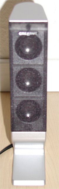 Die kleinen Lautsprecher sind fast außergewöhnlich hoch geraten und heben sich deutlich vom ursprünglichen Design Creatives für Satellitenboxen ab. Für den richtigen Klang sorgen nun ganze drei kleine Membrane statt einer einzigen, wie es bei den Vorgängermodellen der Fall war. Diese können wahlweise mit einem kleinen synthetischen Netzgitter abgedeckt oder auch offen gelassen werden.