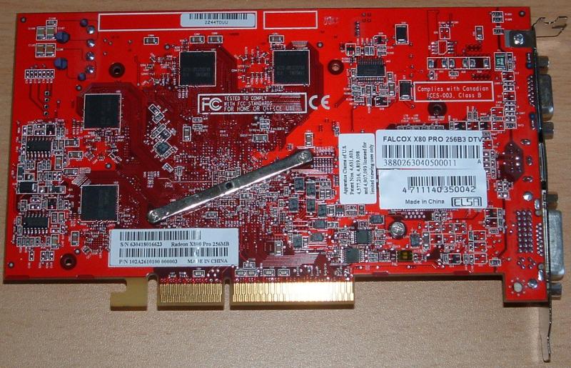 Ansonsten ist die ELSA Falcox X80 Pro wie gewohnt mit VGA-Port, DVI-Schnittstelle für den digitalen Anschluss eines Flachbildschirms und einem TV-Ausgang per S-Video ausgestattet.