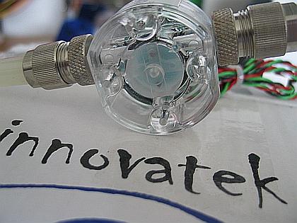 Je nach Durchflussleistung und daraus resultierender Drehzahl des Turbinenflügelrads steigert sich das impulsartige Leuchten der blauen LED. Zudem ist durch das transparente Chassis eingeschränkt auch der Wasserfluss zu beobachten. Hierzu bietet die drehzahlabhängig leuchtende integrierte LED eine entsprechende visuelle Unterstützung, welches für Modder zusätzlich einen optisch zu betrachtenden Eye-Catcher Effekt offeriert. Innovatek gibt an, dass der Durchfluss bei gleichmäßig stark leuchtender LED normal sei. Dies entspricht je nach Pumpen und Systemaufbau in etwa Durchflussleistungen von ca 40-45 L/h.
