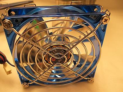 Beim Lüfter handelt es sich um eine doppelt kugelgelagerte 92mm Variante mit einem Drehzalbereich von 1200-2400 Upm. Der Volumenstrom liegt bei 37-78m³ und einer werksseitigen Geräuschangabe von 17-29 dB(A). Mit max. 2,57 Watt ist ein problemloser Betrieb über die Fan-Anschlüsse des Mainboards sicher gestellt. Mit der beigepackten Lüftersteuerung kann der Anwender den Lüfter den jeweiligen Betriebsbedingungen anpassen.