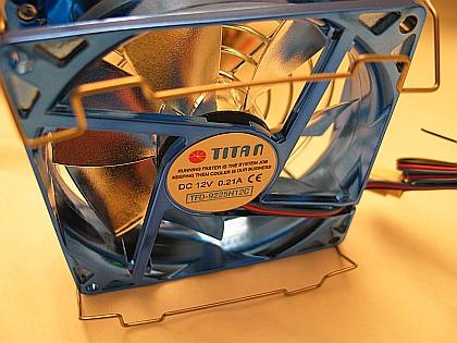 Die Aufmachung des Lüfters kann als sehr gelungen und optisch sehr chic und ansprechend gelten. Zum Schutz vor Verletzungen ist ein mittlerweile fast übliches Lüftergitter aufgeschraubt.