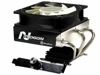 Silverstone hat das Design des „Nitrogon NT01“ aufgegriffen und mit der doppelten Kühlfläche ausgestattet. Die Biegung der Heatpipes soll den Kühler kompatibel zu nahezu jedem Mainboard und Gehäuse machen. Als Lüfter wird der 120x120x32mm große „FM122“ eingesetzt, der die Sockelumgebung des Prozessors gleich mitkühlen soll. Die Lautstärke dieses Lüfters ist mit 21 bis 42 dBA angegeben, je nachdem welche Drehzahl man auf der mitgelieferten Steuerung einstellt (800 bis 2400 U/min).