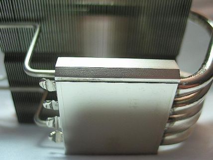 Die Kühloberfläche der 78 Lamellen beträgt bei je 125x35mm ca. 3700cm². Zum Vergleich: HR-01 = 2048cm, Ultra-120 ebenfalls ca. 3700cm², Zalman CNPS 9500 = 3698cm². Spitzenreiter ist nach wie vor der Sonic Tower von Thermaltake mit über 5000cm².