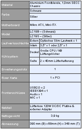 Durch die steigende Anzahl von mobilen CPU’s für den Desktop-Bereich, sahen die SilverStone Ingenieure eine große Chance ein Gehäuse zu entwickeln, welches wirklich die Vorteile dieser Bewegung nutzt. Das Resultat ist ein unglaublich schmales Gehäuse mit nur 68mm Höhe, dass trotz der geringen Größe ein Mikro-ATX Mainboard und weit verbreitete Storage-Komponenten aufnehmen kann. Für Leute, die ein System bevorzugen das sehr schön anzusehen ist (und vor allem Platz sparend) und trotzdem die Leistung hat um nahezu alles machen zu können, ist das LC19 perfekt.