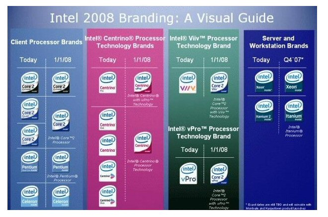 berichteten wir über Gerüchte die besagten, dass Intel seine geplante CPU-Umbennung wegen angeblicher Proteste zahlreicher Mainboard-Hersteller vorerst gestoppt hätte. Nun hat jedoch ein Intel-Sprecher bestätigt, dass einige Prozessoren eine Namensänderung bekommen. Angeblich sollen die wohl wichtigsten Bezeichnungen für Desktop-Prozessoren jedoch vorerst beibehalten werden, so dass es nach wie vor einen Core 2 Quad, Core 2 Duo und auch Core 2 Solo geben wird.