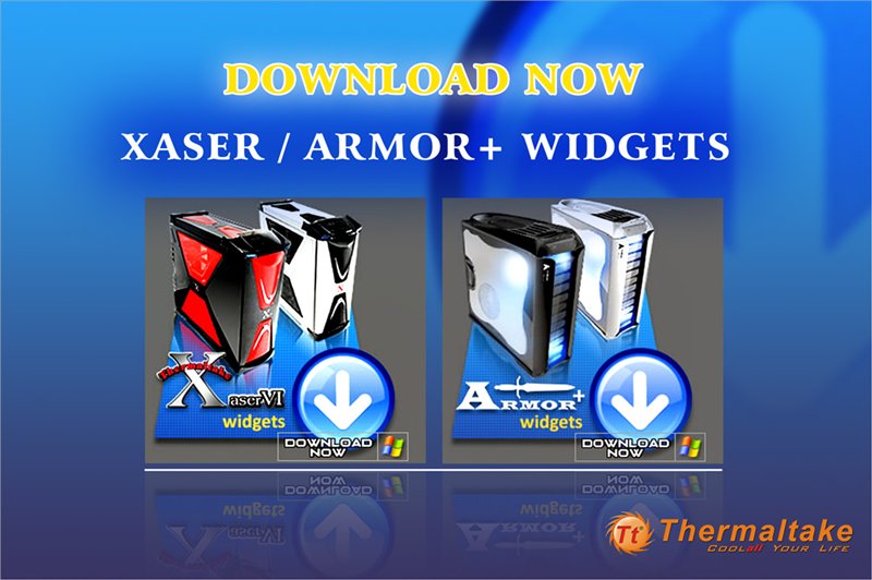 Thermaltake not only design high performance chassis to meet all demands of PC enthusiasts, it took a step further in creating Xaser VI Widget and Armor+ Widget to help users monitor their system performance and obtain live information conveniently. Xaser VI / Armor+ Widget is a small tool which allows users to see the live status of CPU Usage, Memory Usage, Battery Status, Wireless Signal, Clock, World Time, Countdown Timer, Tt News, Gallery, and Weather. Simple download and installation of Thermaltake Widget is all that’s needed to enjoy easy system monitoring on your desktop.