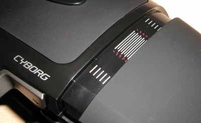 Wie mittlerweile nahezu alle Gaming-Mäuse hat auch die Saitek Cyborg die 3000dpi-Grenze geknackt und kommt mit einem 3200dpi starken Laser-Sensor. Dieser ist selbstverständlich verstellbar, so dass man die Maus seinen Spielgewohnheiten anpassen kann.