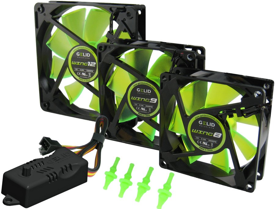 Letztes Jahr gab es einigen Wirbel im Hause des Schweizer Kühlungsspezialisten Arctic Cooling, jetzt sind die damals mehr oder weniger unfreiwillig ausgeschiedenen Mitarbeiter wieder aufgetaucht – als Lüfterhersteller mit dem Namen „GELID Solutions“. Zum Start gibt es gleich vier Serien von Gehäuselüftern: die entkoppelten ‚Silent‚, die Temperatur-gesteuerten ‚TC‚ und ‚PWM‚ sowie die grün-schwarzen ‚Wing‚. Alle Lüfter sind in den Größen 80, 92 und 120 Millimeter erhältlich.