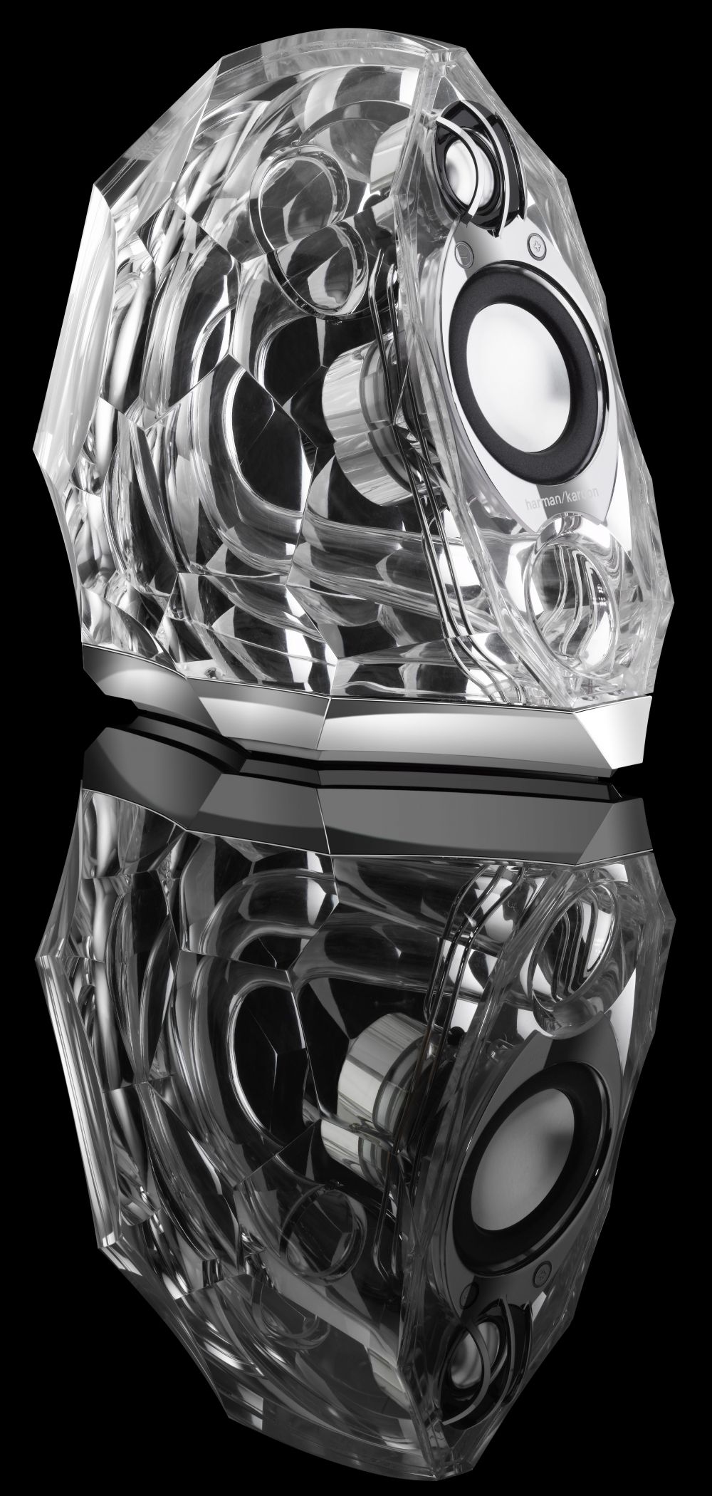 Harman Kardon hat auf der IFA in Berlin mit dem GLA-55 ein neues Stereo-Boxenpaar der Luxusklasse für 799 Euro vorgestellt. In den auf Chromfüßen thronenden Gehäusen aus Acrylglas wurden so genannte Atlas AL-Tieftöner und CMMD-Hochtöner verbaut. Über zwei berührungssensitive Tasten auf dem rechten Satelliten wird die Lautstärke geregelt oder das Gerät, durch Drücken beider Lautstärketasten, stumm geschaltet.