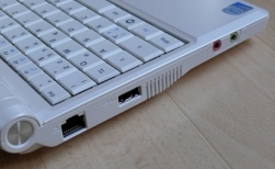 Das handliche Gerät besitzt einen USB- sowie einen Netzwerk-Anschluss, Sound-Ausgang und Mikrofon auf der linken Seite und zwei USB-Anschlüsse und einen VGA-Anschluss auf der rechten Seite. Einen DVI-Anschluss sucht man leider vergebens. Zusätzlich gibt es noch einen Cardreader, der allerdings nur das SD und MMC Format beherrscht. Am oberen Rand des Displays ist zudem noch eine Webcam in den Rahmen eingelassen, die sich auf eine Auflösung von 640×480 Pixel versteht. Wer in dem Netbook allerdings ein optisches Laufwerk sucht, wird hier, wie auch bei der Konkurrenz, nicht fündig. Darüber sollte man sich vor dem Kauf im Klaren sein, da dies die Flexibilität erheblich einschränkt.