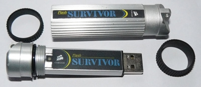Der Flash Survivor von Corsair kommt in der bei Corsair üblichen, verschweißten Blister-Verpackung daher. Der Käufer wird über die Kapazität und Widerstandsfähigkeit des Sticks informiert. Der „ultra-stabile“ Stick wurde fallgetestet und soll wasserfest sein bis zu einer Tiefe von 200 Metern. Die Garantiezeit beläuft sich auf 10 Jahre. Erhältlich ist das Modell mit 4 GByte derzeit ab rund 18 Euro.