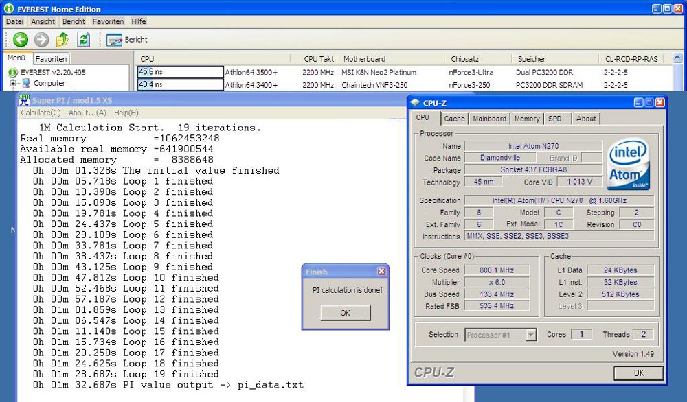 Die Arbeitsgeschwindigkeit des Netbooks ist subjektiv sehr gut. Man merkt zwar, dass die CPU nicht die schnellste ist, aber für den Office-Betrieb geht die Leistung absolut in Ordnung. Einen wichtigen Teil steuert hier sicher auch die verbaute 2,5″ Festplatte von Fujitsu bei. Sie ist eine der schnelleren ihrer Zunft und arbeitet sehr leise. Die Kapazität von 160 GByte ist auch mehr als ausreichend groß für „unterwegs“.