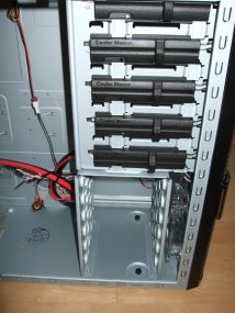 Die fünf Schächte im 5,25-Zoll-Format bieten genug Platz für Cardreader (Adapter) und optische Laufwerke. Schnellverschlüsse und Einbauschienen sollten Werkzeug an dieser Stelle überflüssig machen.