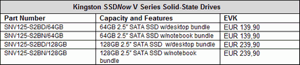 Computex, Taipeh – 3. Juni 2009 – Kingston Technology, der weltgrößte unabhängige Speicherhersteller, kündigte heute die einfach zu installierende SSDNow V “Value” Serie an. Die neuen auf Flash-Memory basierten Festplatten sind für den täglichen Einsatz konzipiert und adressieren kleine und mittlere Unternehmen (SMBs). Die neuen Platten der SSDNow V Serie sind mit 128GB und 64GB verfügbar und sorgen für einen drastischen Performance-Schub bei gleichzeitig geringeren Stromverbrauch gegenüber herkömmlichen PCs und Notebooks. Die von Kingston angebotenen SSD Kits sind aufgrund von Performance und attraktiven Preis ideale Upgrade-Lösungen.