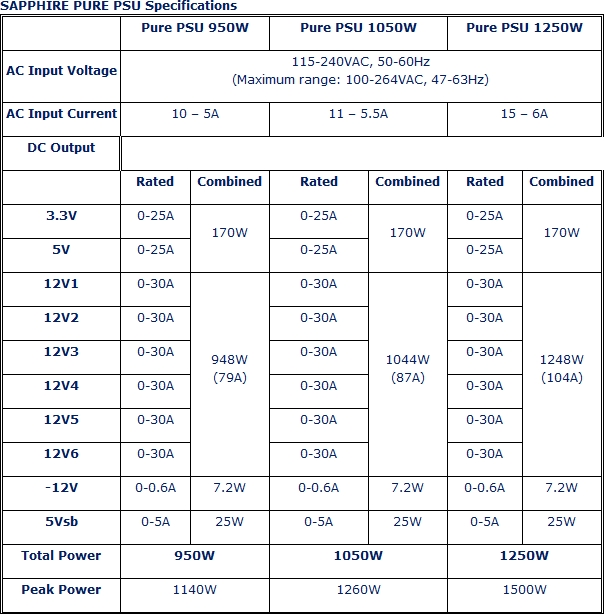 Another new introduction, demonstrating SAPPHIRE’s recognition that value for money is critical in today’s economic climate is the PURE 950W. Delivering over one Kilowatt of peak power and with certification to the 80Plus Silver level, the SAPPHIRE PURE 950W is positioned at a price level to compete with supplies that have much lower specifications.