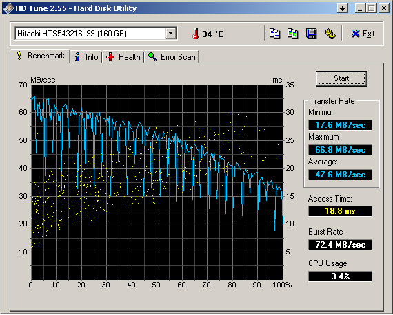 Dieser findet wieder unter den bekannten Bedingungen statt. Mit eingeschaltetem WLAN, geöffneten Webseiten und Anwendungen und einer Displayhelligkeit von etwa 75 % wird der Eee PC 1005HA in den Ring geschickt. Nach 6 Stunden und 40 Minuten macht der 4400 mAh (48 Wh) starke Akku schlapp. Spitzenklasse!