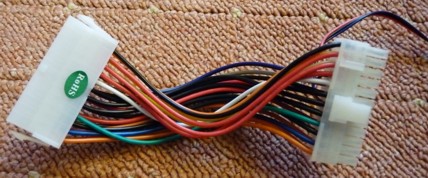 Im nächsten Schritt wird das Netzteil verbaut. Zwischen dem 24-poligen ATX-Anschluss des Mainboards und dem Netzteil wird ein Adapter eingebaut, den Thermaltake mitgeliefert hat.