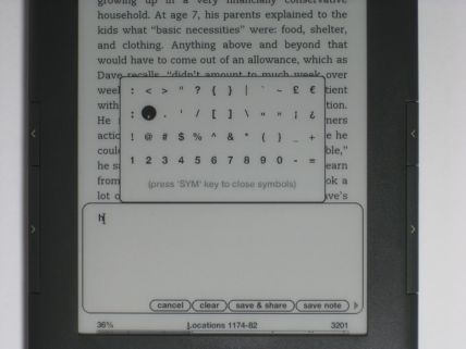 Über die Menü-Taste lassen sich in PDFs und Büchern Lesezeichen setzen, Notizen hinzufügen, Wörter markieren und die Dateien nach Wörtern durchsuchen. Durch eine Plazierung des Cursors im Text der Datei wird zudem automatisch eine Erklärung des vorinstallierten Englisch-Englisch-Wörterbuchs geliefert. Markierte Stellen und hinzugefügte Notitzen werden allerdings nicht in der Datei selber, sondern in einer zusätzliche Datei im PDR-Format gespeichert, so dass die Datei nach einem Zurückkopieren auf den Computer wieder völlig unbearbeitet aussieht.