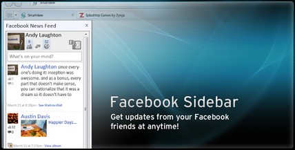 (2) A persistent, real-time Facebook newsfeed located within the Internet Explorer sidebar.