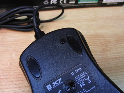 Neben den zwei üblichen Maustasten verfügt die X7 noch über zwei Daumentasten, ein 4-Wege-Scrollrad, eine beleuchtete Dpi-Umschalttaste und noch über eine zusätzliche Mitteltaste. Diese können alle in der beiliegenden Software konfiguriert werden.