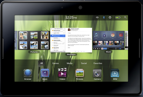 RIMs BlackBerry PlayBook soll auch 1080p-Inhalte wiedergeben und WebKit/HTML-5, Adobe Flash Player 10.1, Adobe Mobile AIR, Adobe Reader, POSIX, OpenGL und Java unterstützen. Der Bildschirm ist mit 7 Zoll kleiner als das 9,7-Zoll-Display des Apple iPads und nutzt eine Auflösung von 1024 x 600 Bildpunkten. Das Gewicht des Slates soll unter 400g liegen.