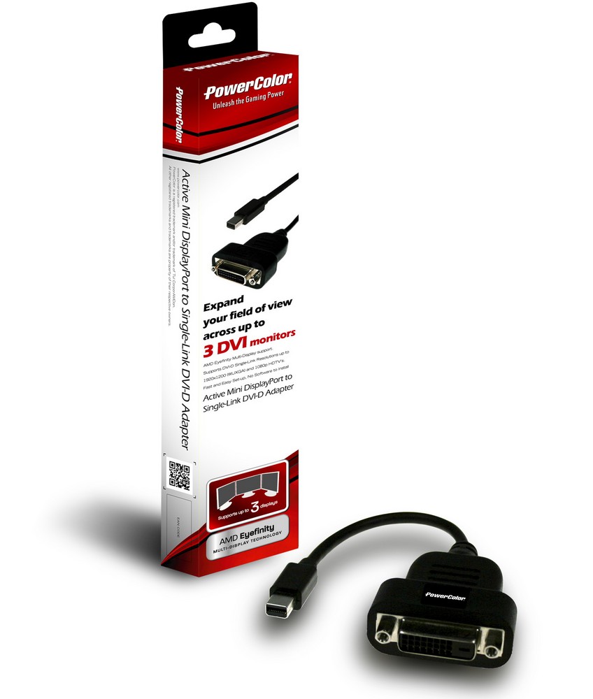 Taipei, Taiwan –November 18, 2010 – TUL Corporation, a leading manufacturer of AMD graphics cards, today announces an adaptor to utilize AMD’s Eyefinity technology available through the latest Mini Displayport outputs. The PowerColor Active Mini DisplayPort to Single-Link DVI-D adaptor allows the multi-display capability through DVI monitors, expanding your gaming view in the most affordable way.