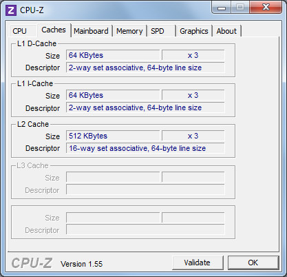 AMD Athlon II X3 420e – CPU-Z Cache