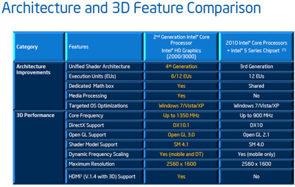 Der Grafikkern arbeitet je nach CPU mit bis zu 1350 MHz. Unterstützt wird nun auch das Shader Modell 4.1 und OpenGL 3.0 sowie DirectX 10.1. Die maximale Auflösung beträgt 2560×1600 Pixel.