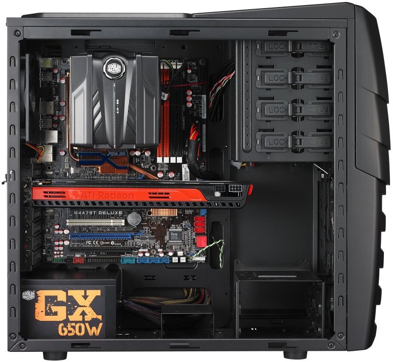 Cooler Master hat sein CM Storm Enforcer Gehäuse vorgestellt. Das Gehäuse läuft unter Cooler Masters CM Storm-Marke, die sich in erster Linie an Spieler richtet und die Cooler Master dieses Jahr mehr in den Vordergrund rücken möchte. Das Gehäuse verbindet laut Coolermaster ein hochwertiges Design mit einem attraktiven Preis. Neben Features wie USB 3.0, Einbauschächte für 2,5 Zoll Laufwerke sowie einen herausnehmbaren bzw. drehbaren Festplattenkäfig bewirbt Cooler Master vor allem das Kühlkonzept des CM Storm Enforcer.