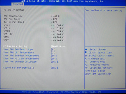 Wie bei Zotac üblich ist auch beim Fusion ITX das BIOS stark eingeschränkt. So gibt es auch diesmal keine Einstellungen (außer einer Spannungserhöhung) für den Arbeitsspeicher. Das BIOS ist UEFI 2.1 kompatibel und die Maus kann zur Navigation genutzt werden.