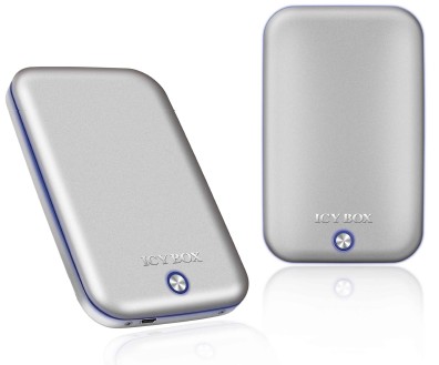 sich auch gut. Das Gehäuse für eine 2,5″-Festplatte kommt in Aluminium mit einem blauen Leuchtring um das Gehäuse und
