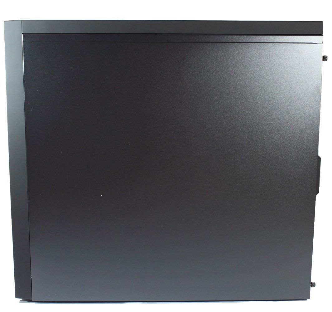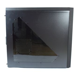 Das rechte Seitenteil ist komplett clean, das linke besitzt hingegen das angesprochene Fenster. Das Windows besteht aus schwarzem Plastik, so dass man ohne Innenbeleuchtung nur schwer durchgucken kann. An das Fenster kann ein 120-mm-Lüfter angebracht werden.