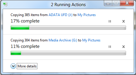 Beim Erweitern des Dialogs zeigt Windows 8 den Datendurchsatz in Echtzeit an. Außerdem wird die Entwicklung der Übertragungsrate für den gesamten Vorgang grafisch dargestellt. Die geschätze Restzeit wird wie bisher auch angezeigt. Wegen vielen unbekannten Faktoren ist die Zeitschätzung bei älteren Windows-Versionen relativ ungenau. Auch bei Windows 8 wird sich das leider nicht ändern. Anstatt eine etwas bessere Schätzung mit hohem Aufwand zu erreichen, will Microsoft dem Benutzer stattdessen möglichst viele Informationen liefern. Damit soll der User einen guten Gesamtüberblick bekommen, um selbst einschätzen zu können, wie lange die Kopiervorgänge noch dauern.