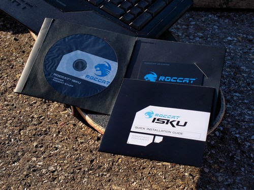Nach dem Öffnen der schicken Umverpackung befindet sich die ISKU und das Zubehör in einem extra stabilen Karton: Nach dem Öffnen kommen die ROCCAT ISKU selbst und ein Zubehörpäckchen zum Vorschein, wobei die Tasttur selbst noch einmal extra in einer statischen Schutzfolie verpackt ist. Das Zubehör ist in einer kleinen Mappe zusammengefasst und umfasst: