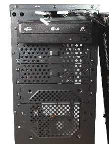 Beim Einbau des optischen Laufwerks gibt es ebenfalls leichte Einschränkungen. Durch die Frontanschlüsse kann die Front nicht komplett entfernt werden. Man sollte die Kabel für die Stecker daher im Inneren des Gehäuses nicht zu ordentlich verstecken, da etwas Spiel benötigt wird. Nach der Entfernung einer Frontblende wird das Laufwerk dann wie üblich in den Schacht geschoben und auf beiden Seiten mit Thumb-Screws befestigt.