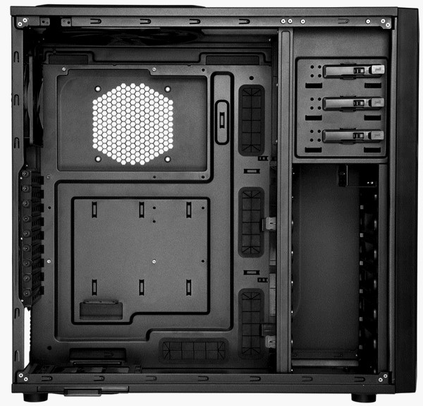 Das Eleven Hundred wird mit einem 200 mm Lüfter im Deckel und einem 120 mm Lüfter in der Rückseite ausgeliefert und verfügt über sieben weitere Lüfterhalterungen für hervorragende Grafikkarten- und Festplattenkühlung. Eine Lüfterhalterung befindet sich hinter der Motherboardauflage um den Prozessor noch effizienter kühlen zu können. Nutzer können zudem den vorinstallierten Stromverteiler zum Anschluss von bis zu vier Lüftern an einem einzelnen Molex-Stecker für verbessertes Kabelmanagement verwenden.