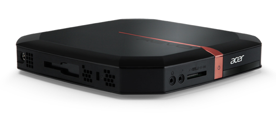 Dank mitgelieferter Fernbedienung und AMDs Brazos E450 mit zwei Kernen und 1,65 GHz Takt soll sich der kompakte PC besonders für Multimedia-Fans eignen. So reicht die integrierte AMD Radeon HD 6320 zwar nicht für bombastische Spieleerlebnisse, ermöglicht aber das Abspielen von Full-HD-Videos. An Schnittstellen sind HDMI, VGA, sechmal USB 2.0, ein Multi-in-1-Kartenlesegerät (SD, MMC, MS, xD), Wi-Fi 802.11 b/g/n, Gigabit Ethernet und S/PDIF an Bord. Dank der kompakten Bauweise lässt sich Acers Revo RL70 sogar an der Rückseite von Monitoren mit VESA-Halterung befestigen.