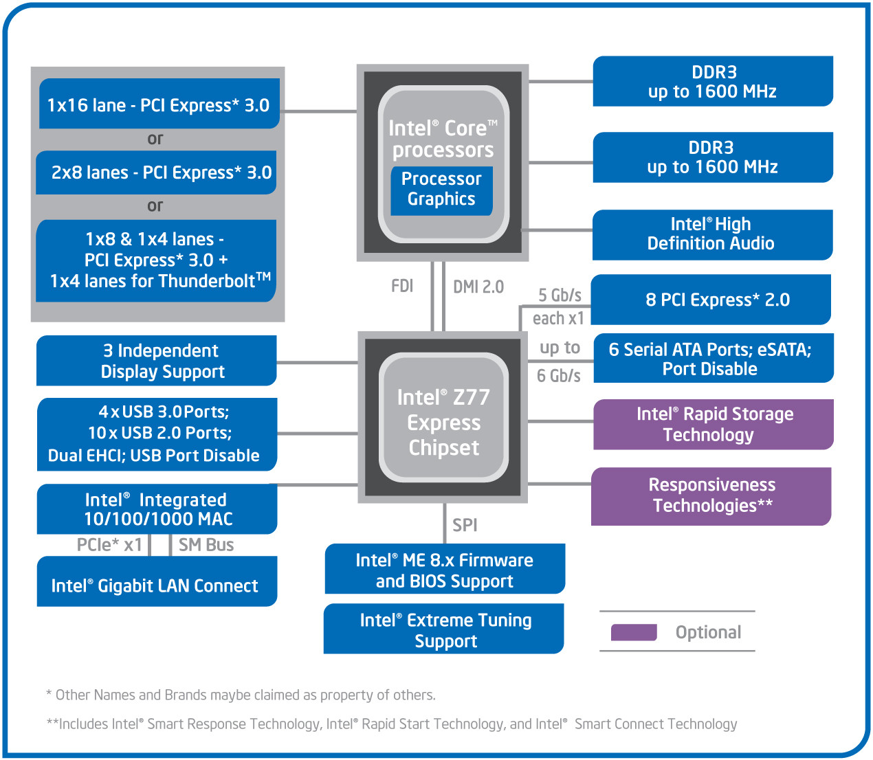 Im Blockdiagramm sind die einzelnen Schnittstellen vom Z77 Chipsatz nochmals übersichtlich dargestellt.