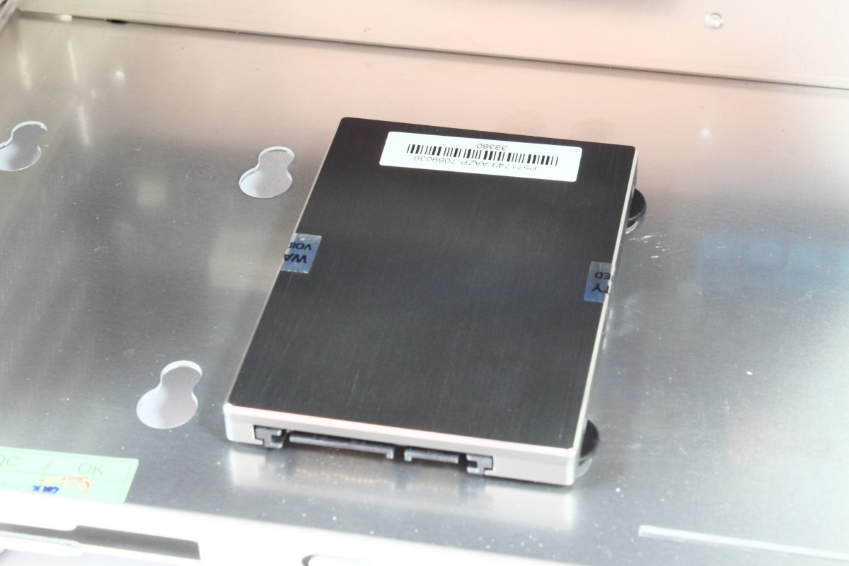 Der Festplatteneinbau gestaltet sich beim Lian Li PC-100 Gehäuse ebenfalls etwas anders als gewohnt. Die Festplatten lassen sich nur senkrecht installiert. An den Festplatten werden vier Schrauben mit Gummierungen angebracht und diese an die vorher entfernte Halterung befestigt. An der Rückseite lassen sich drei weitere Festplatten befestigen, allerdings nur, wenn keine sehr langen Grafikkarten verbaut wurden. SSDs lassen sich an der Halterung ebenfalls befestigen.