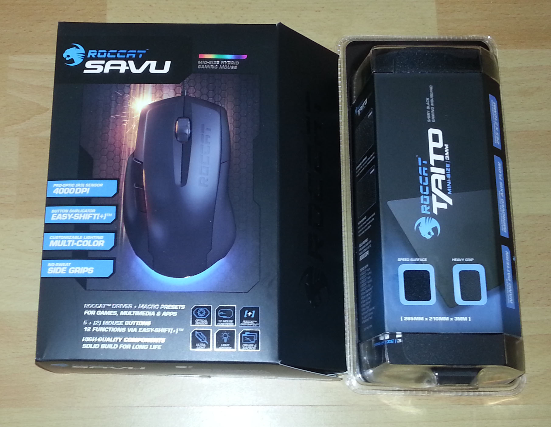 Freundlicherweise hat uns Roccat direkt ein Maus-Pad, das Taito, mit zur Verfügung gestellt. Im Handel kostet dieses Pad ca. 7 Euro, während die Roccat Savu mit der unverbindlichen Preisempfehlung von 60 Euro versehen ist. Online ist sie für 5 bis 10 Euro weniger zu bekommen.