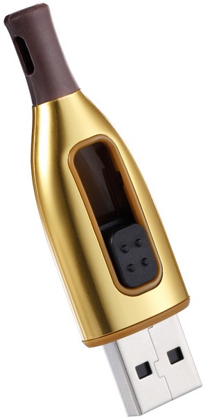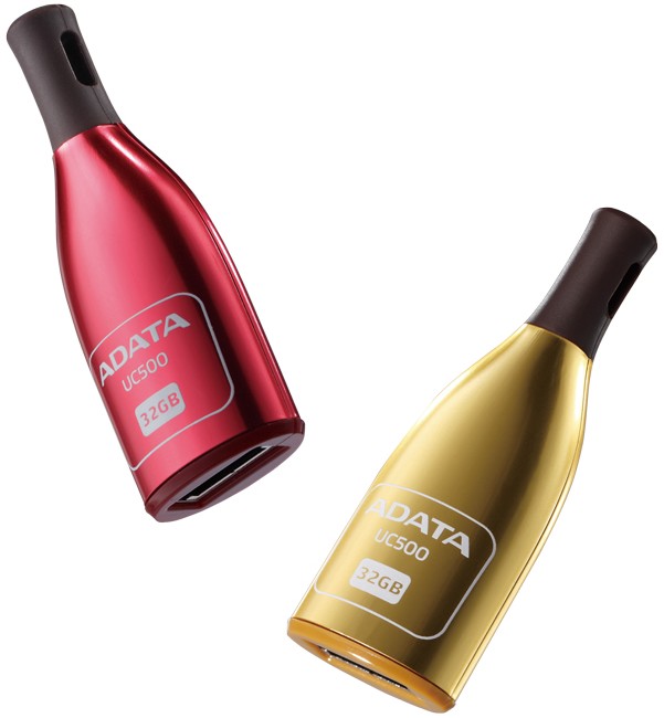 The 50 x 19 x 11 mm (LxWxH) DashDrive Choice UC500 sports an attractive curved bottle shape, with color choices of golden champagne and sparkling red. The glossy metal exterior adds durability to the eye-catching shape, letting the user carry their ‘memories in a bottle’ with confidence and pride. The UC500 is small and easy to carry, with an integrated strap hole for use with a keychain or lanyard. The sliding type USB connector eliminates the need for a cap. Capacities of 8, 16, and 32 gigabytes ensure ample storage space for treasured personal data.