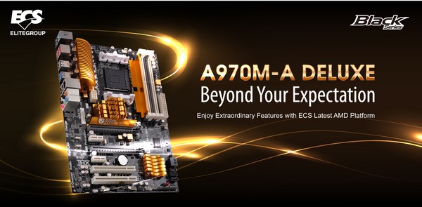 2012 October 18, Taipei, Taiwan – Elitegroup Computer Systems (ECS) has announced the newest member of its high-performance Black Series of PC motherboards. The ECS A970M-A DELUXE supports AMD AM3 and AM3+ APUs, and gets the most from them with the latest ECS innovations for power, ease-of-use, and reliability. With features like full Windows 8 support, an upgraded user friendly BIOS – EZ BIOS, dust defending technology – Anti Dust Technology (ADS) and 8 channel HD audio, the A970M-A DELUXE is the heart of the ultimate gaming center and perfect all-round PC.
