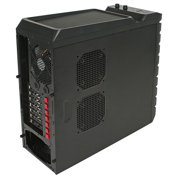 Nun kann man die Lüfterkombinationen frei konfigurieren. Ab Werk ist neben dem 140-mm-Modell bereits ein 120-mm-Lüfter an der Rückseite vorinstalliert. Unter dem Gehäusedeckel und im linken Seitenteil lassen sich ebenfalls jeweils zwei 120 mm Lüfter verbauen. Am Gehäuseboden findet ein Modell mit 80 bzw. 120 mm Platz.