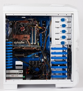 Da im AeroCool GT-S auch Platz für XL-ATX-Mainboards vorhanden ist, ließ sich unser übliches ATX-Mainboard problemlos verbauen. Die Halterungen der Steckkarten sind sehr stabil gestaltet, so dass auch schwerere Grafikkarten problemlos gehalten werden können. Verbaubar sind Karten bis etwa 33 Zentimeter Länge.