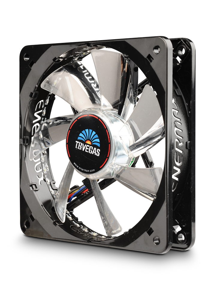 Enermax erweitert seine Lüfterreihe T.B.Vegas um neue Modelle. Die Lüfter mit einfarbiger LED-Beleuchtung erscheinen in den Varianten Blau, Rot und Weiß. Eine PWM-Steuerung ist mit an Bord. Die Lüfter variieren die Drehzahlen in drei Stufen und messen 120 mm im Durchmesser. Dank der Twister-Lager verspricht Enermax eine niedrige Geräuschkulisse bei langer Lebenszeit. Dank der APS-Funktion (Adjustable-Peak-Speed) lassen sich drei Modi mit verschiedenen Maximal-Drehzahlen wählen – „Ultra Silent“ rotiert etwa mit 500 bis 1000 und „Performance“ mit bis zu 1800 Umdrehungen pro Minute.